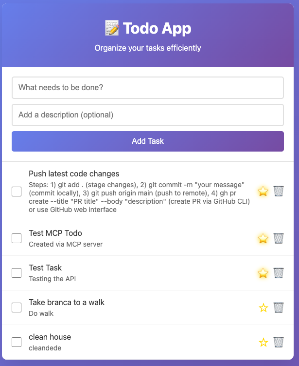 - “Use the todo MCP server to create a new todo called ‘Test MCP Integration’”